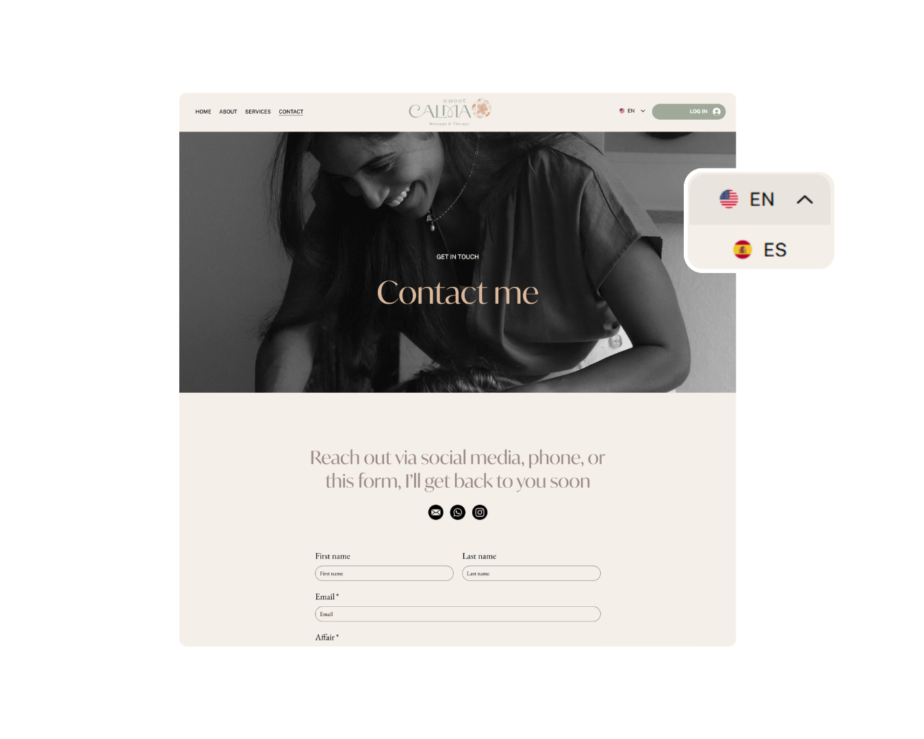 Creación de todas las páginas clave de tu web (Inicio, Sobre mí, Servicios, Contacto) diseñadas para transmitir calma y confianza.